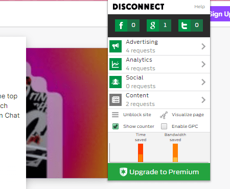 Upon downloading the google extension “Disconnect“, I had visited 2 of the websites I frequently use on a daily basis to see how many connections google has on each and one of them.